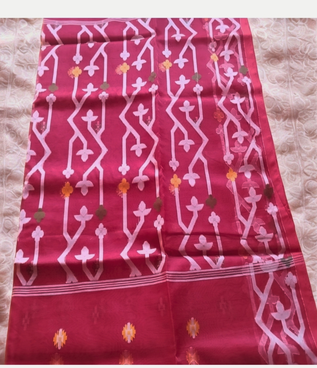 Red Maslin Jamdani Saree